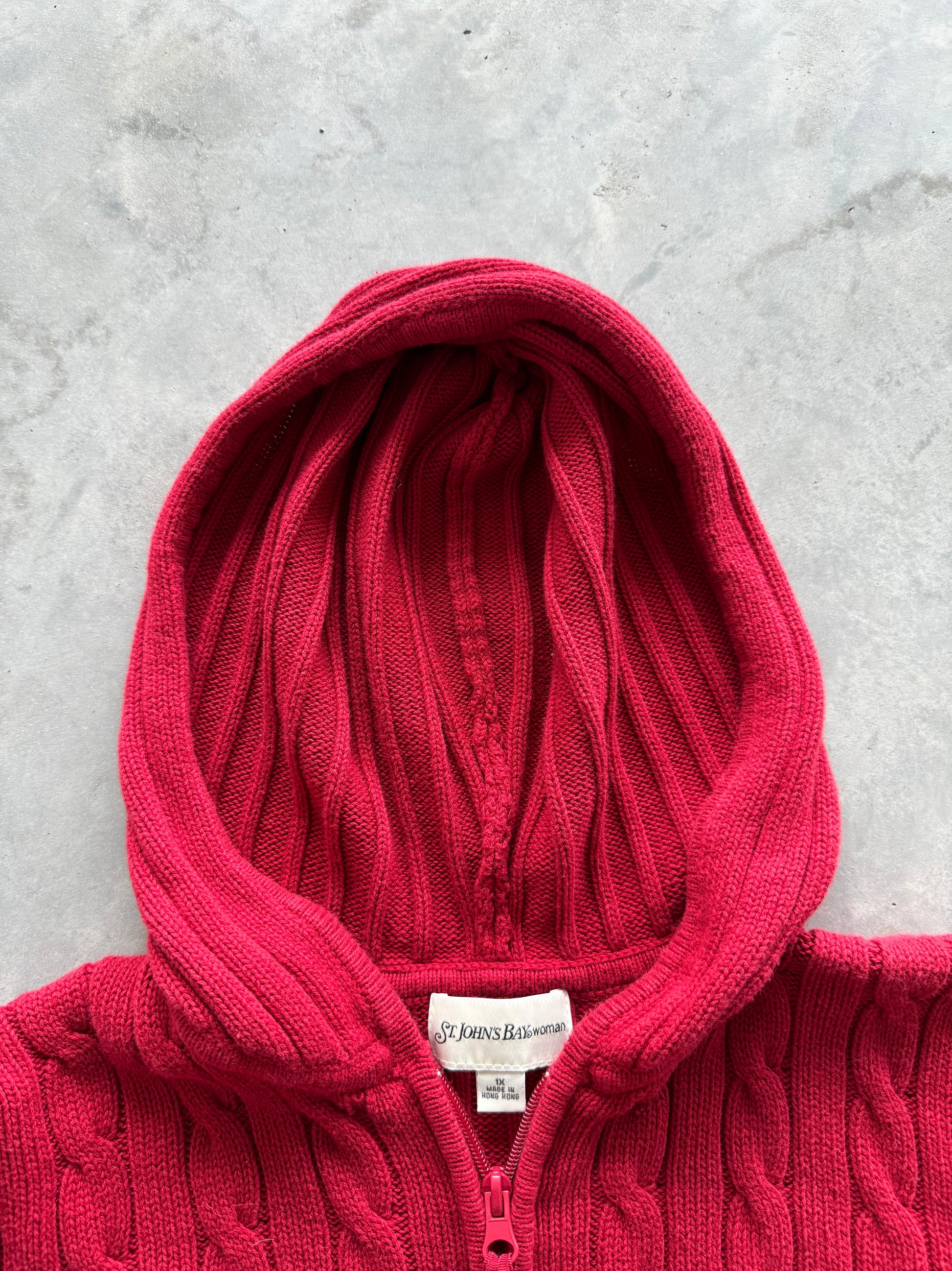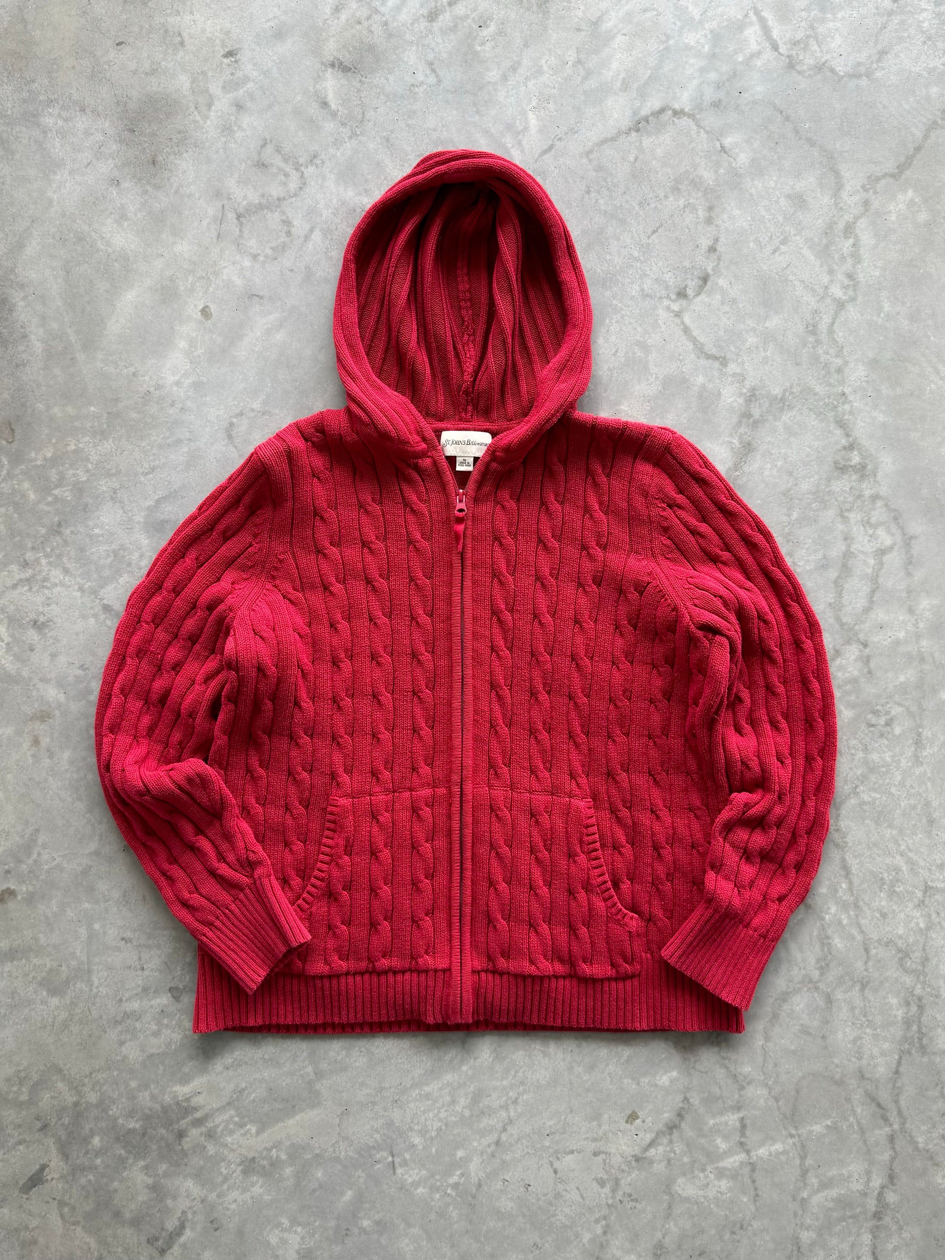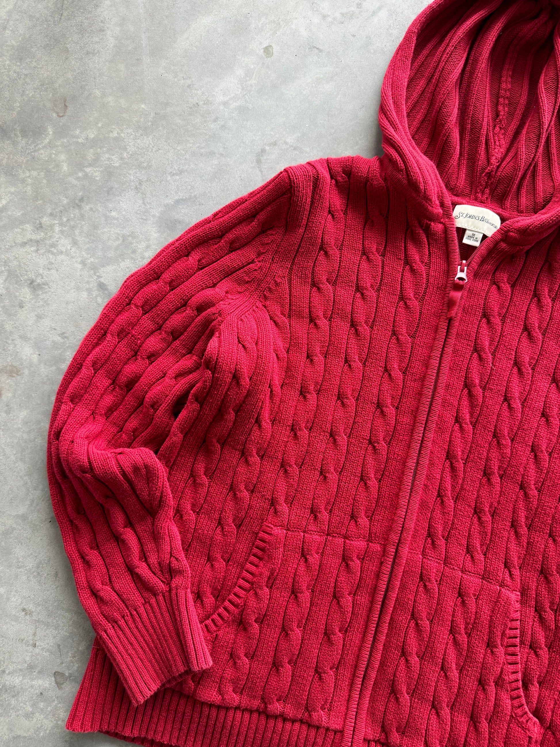 Vintage Cable Knit Hooded Zip-Up - XL