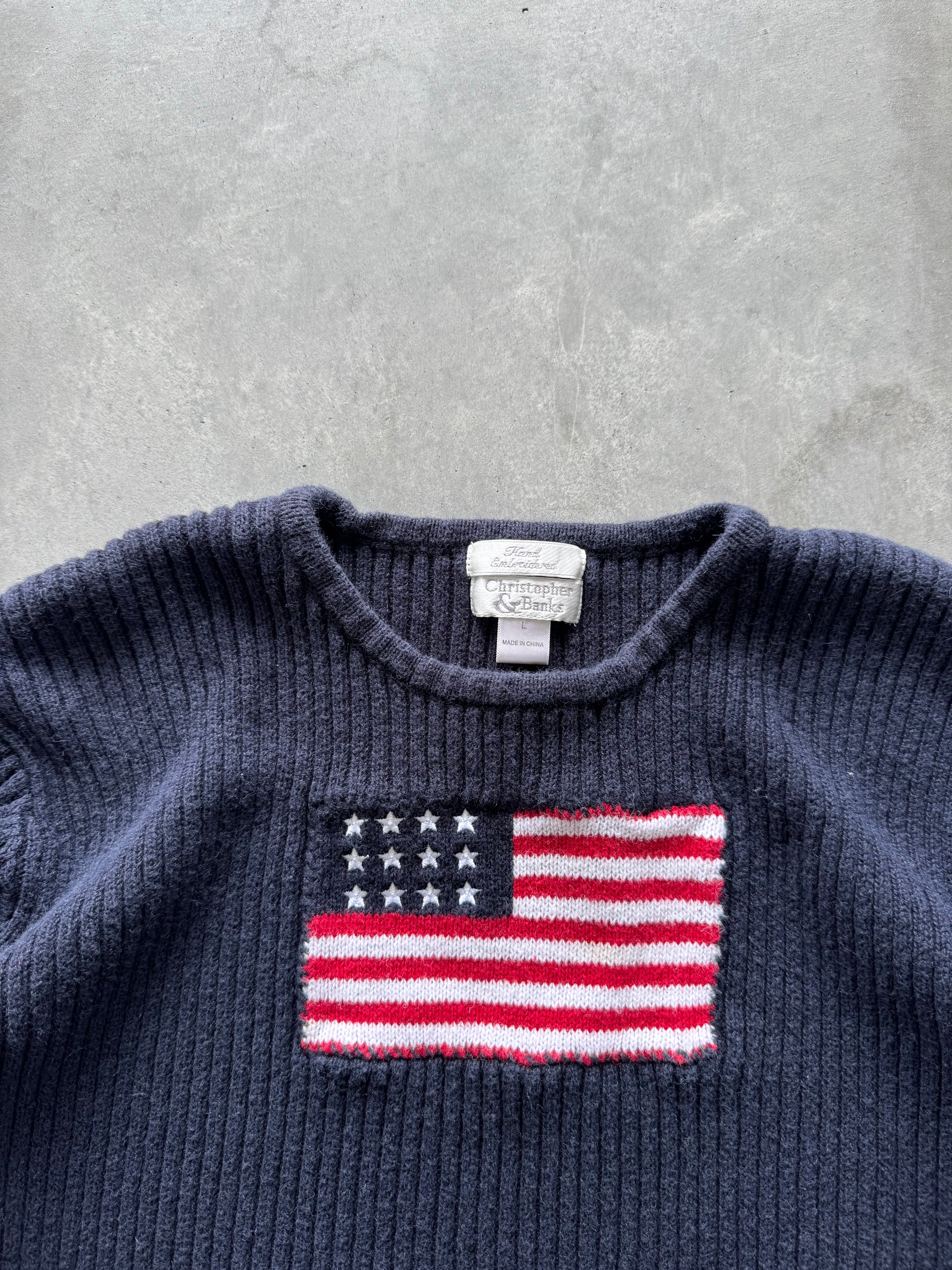 Vintage Knit Flag Sweater - L