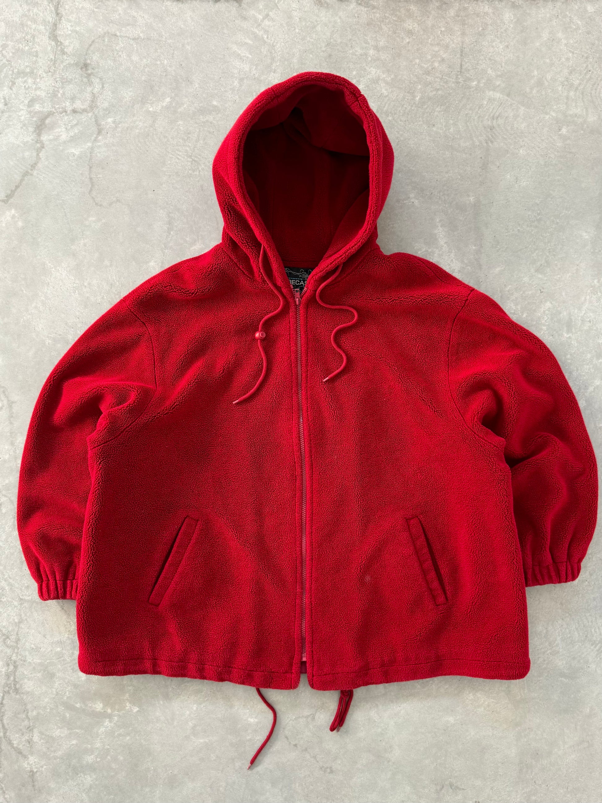 Vintage Red Fleece Hooded Jacket - XXL