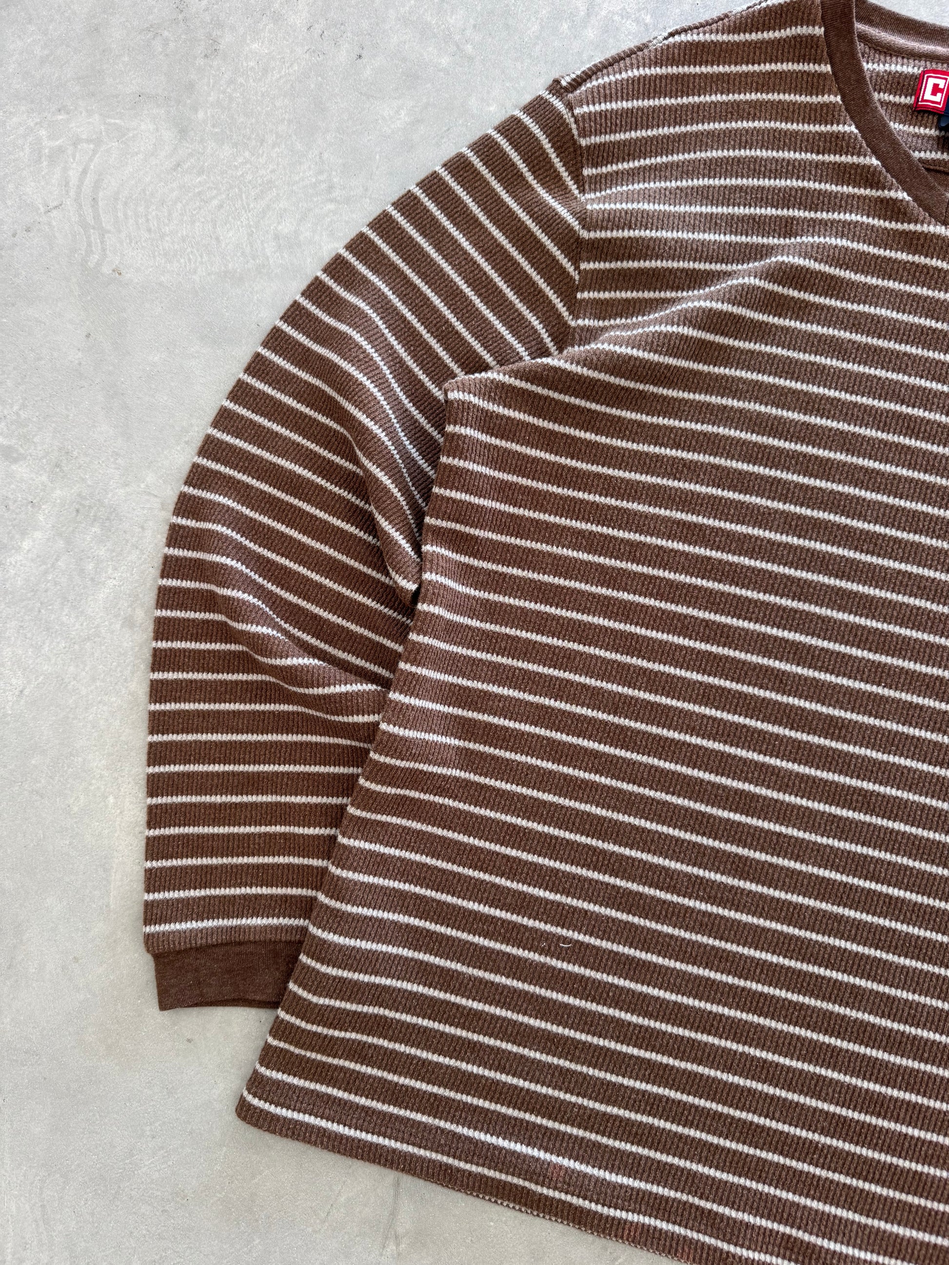 Vintage Striped Waffle Knit Long Sleeve - XL